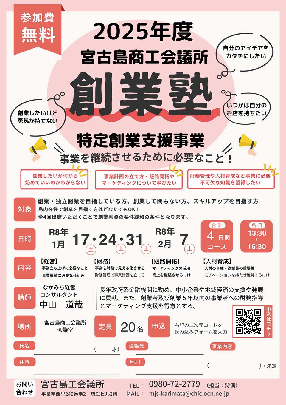 宮古島商工会議所ではこれから創業する方のために、やりたいことのイメージを具体化するプロセスを学ぶセミナーを開催致します。